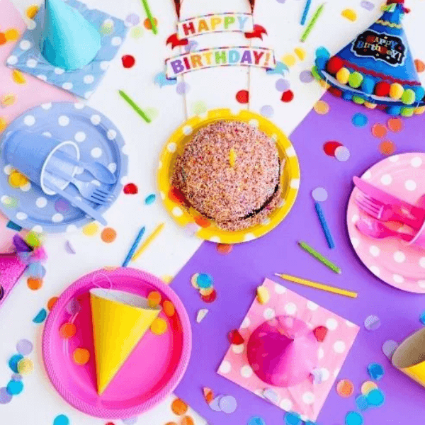 Uma mesa cheia de cor e praticidade para deixar qualquer aniversário mais animado.